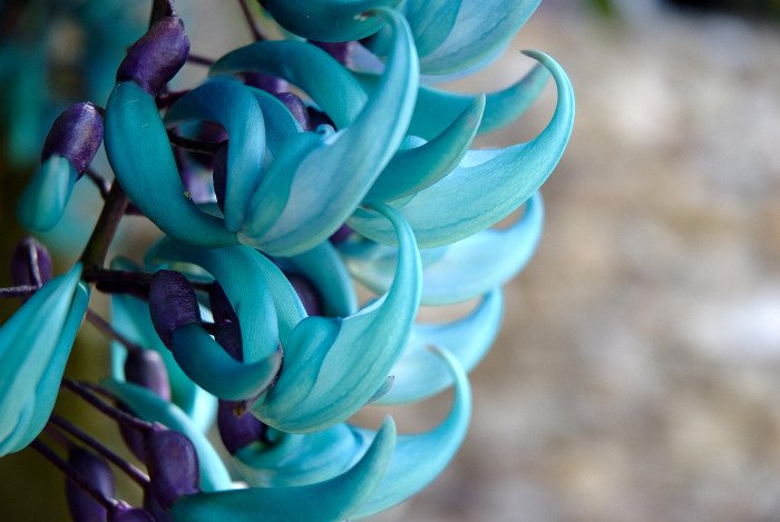 Jade Vine thuộc họ đậu và có màu xanh tuyệt đẹp. Những bông hoa có hình móng vuốt dài và thân cây có thể dài tới hơn 18m. Jade Vine chỉ được thụ phấn nhờ dơi và được tìm thấy trong các khu rừng ở Philippines.